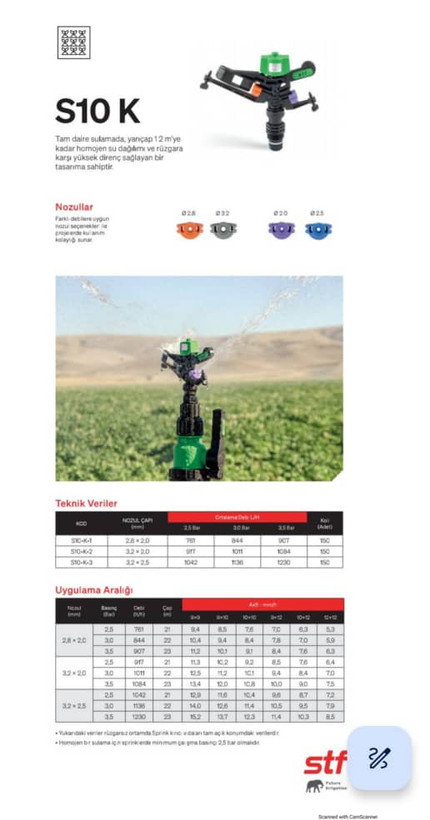 آبپاش پلیمری تمام دور ۳/۴ اینچ اس تی اف مدل S10K